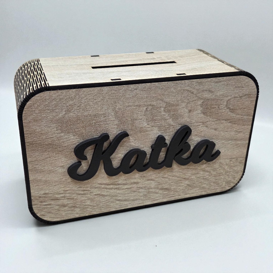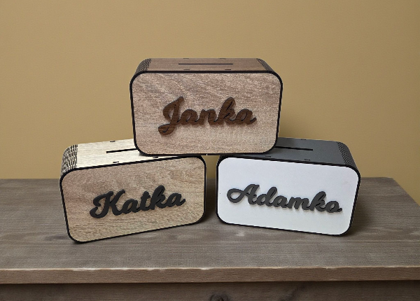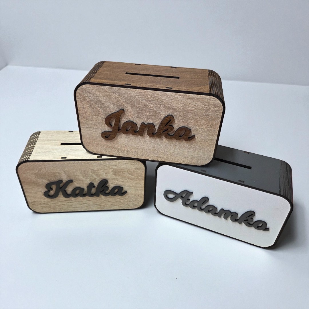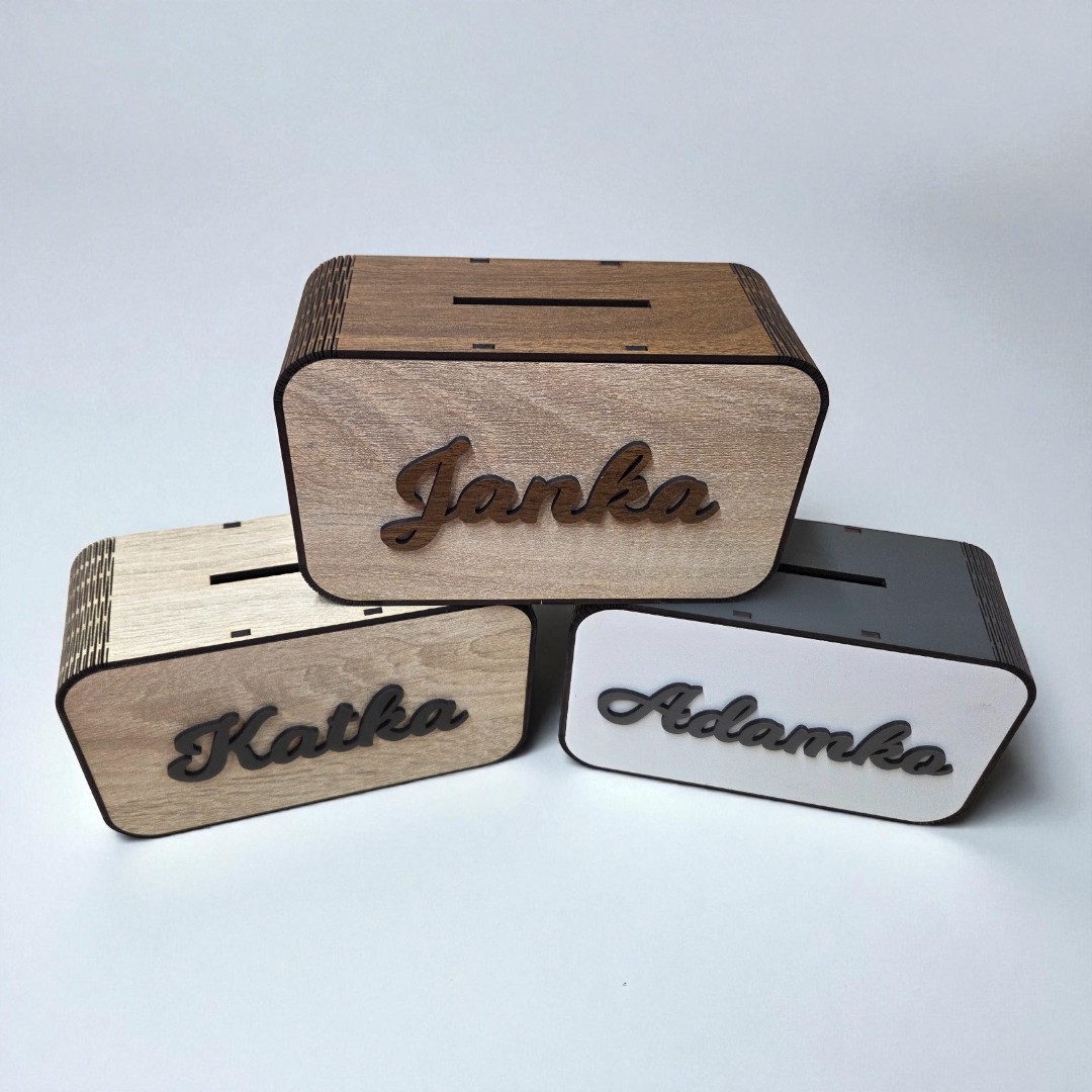 Drevená 3D pokladnička s menom alebo nápisom | Darček na mieru