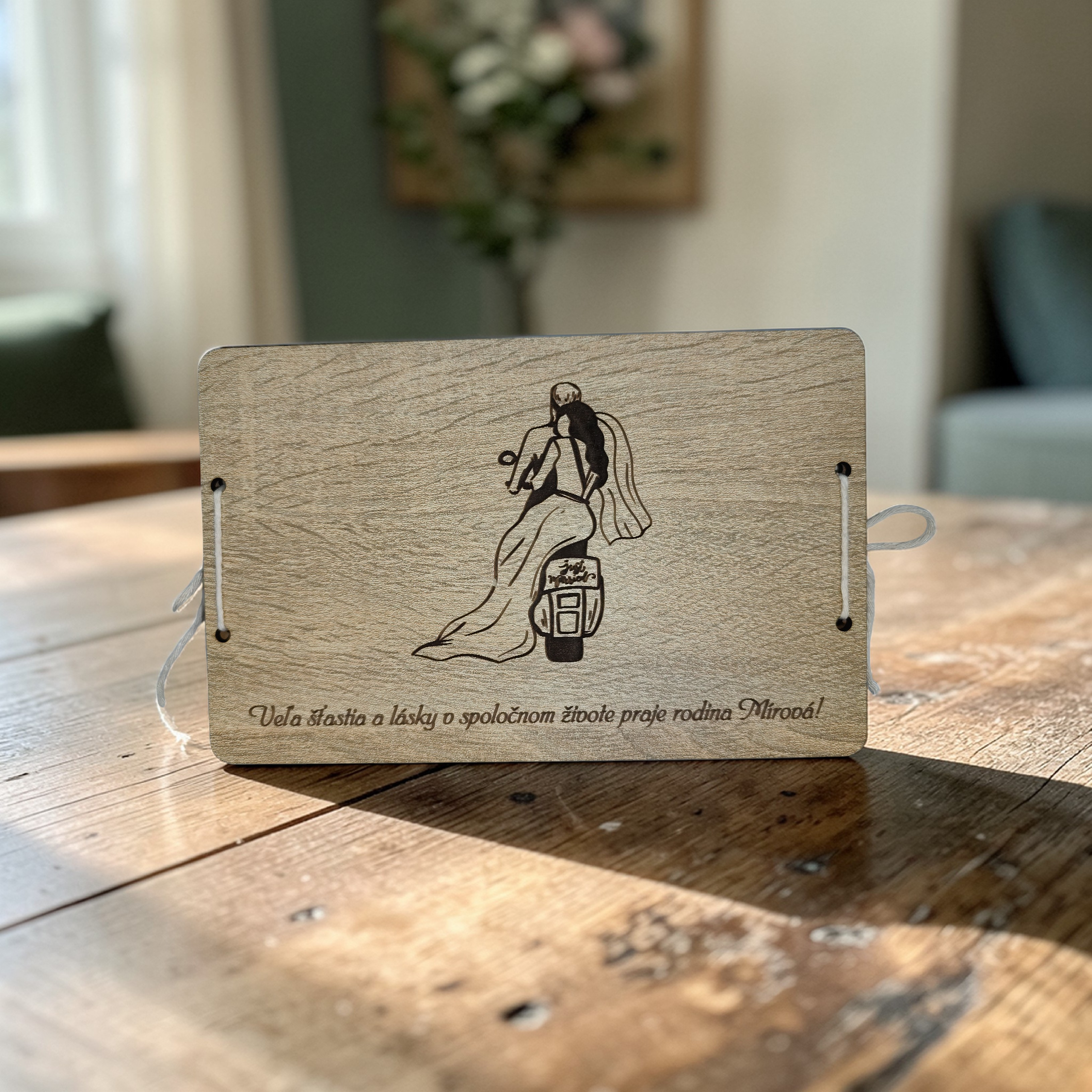 ✨ Pre páry, ktoré milujú slobodu, vietor vo vlasoch a spoločné dobrodružstvá. Táto drevená svadobná obálka s motorkárskym motívom je originálnym darčekom pre novomanželov, ktorých spája vášeň pre jazdu a cestovanie. Namiesto obyčajnej obálky darujete štýlovú spomienku na ich veľký deň.