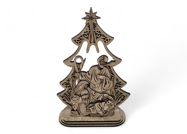 Drevený betlehem – Svätá rodina pod vianočným stromčekom