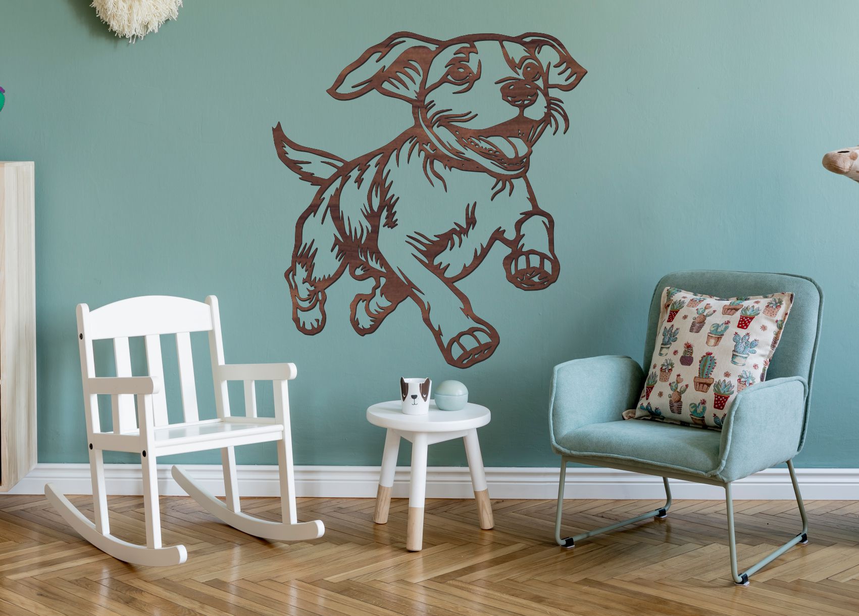 Drevený obraz psíka – veselá dekorácia pre milovníkov zvierat je dynamická, hravá a pozitívna dekorácia, ktorá okamžite rozjasní priestor. Tento motív bežiaceho psíka pôsobí energicky a priateľsky, vďaka čomu sa skvele hodí do...