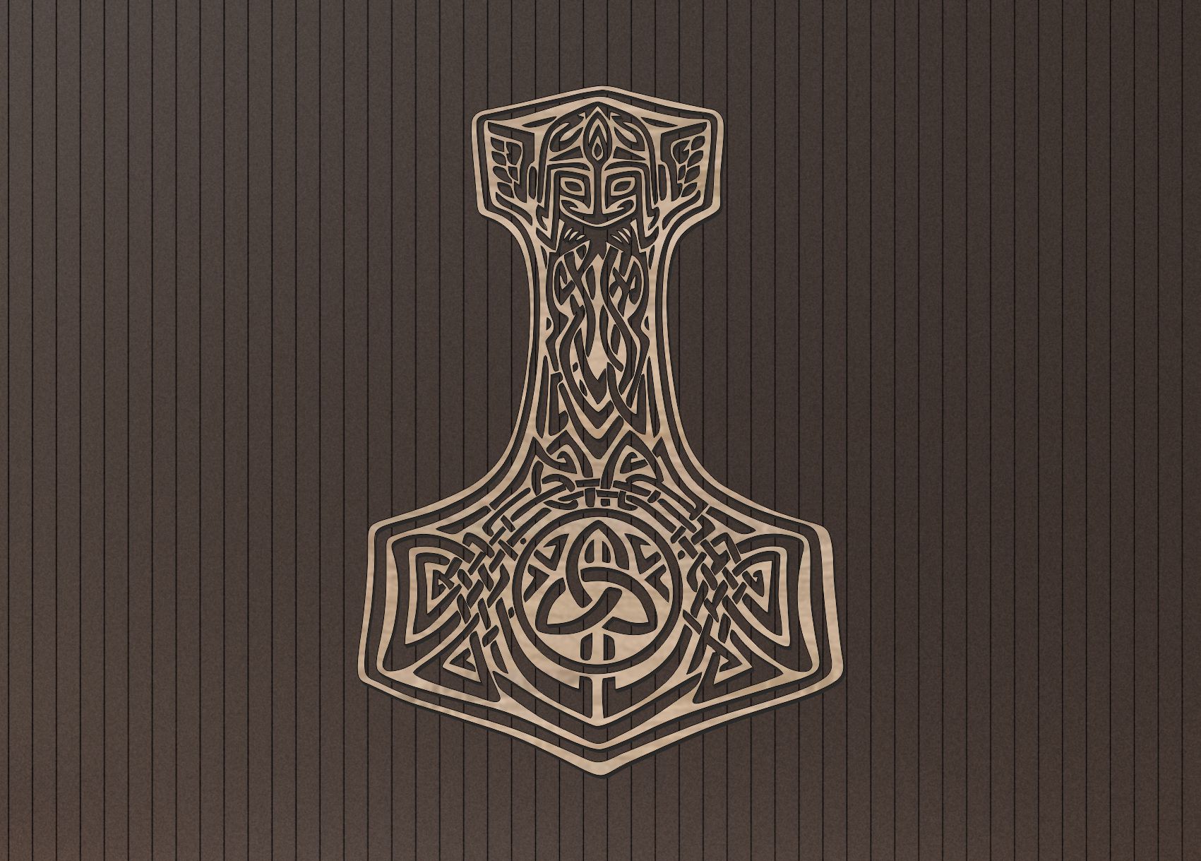 Drevený obraz s motívom Thorovho kladiva – sila, ochrana a severská mytológia v jednom ⚡