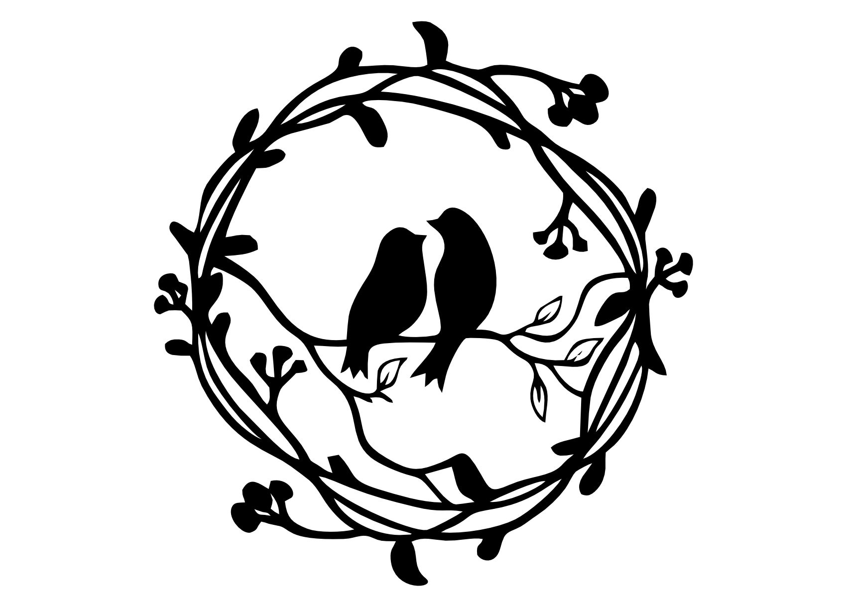 Drevený obraz – Vtáčiky v kruhu z konárikov