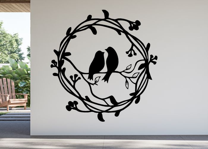 Drevený obraz – Vtáčiky v kruhu z konárikov je jemná a harmonická dekorácia, ktorá pôsobí romanticky a prirodzene. Motív dvoch vtáčikov sediacich na vetvičkách je obklopený kruhom z konárikov, čo vytvára elegantný prírodný venček. Skvele sa hodí do obývačky, spálne, predsiene, detskej izby či na chatu.