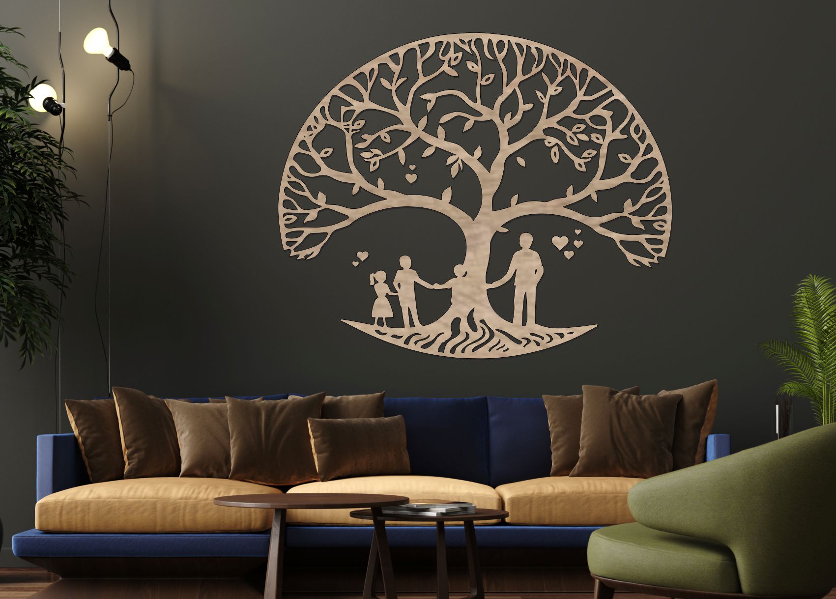🌳 Drevený strom života na stenu – Rodinné puto je výnimočná nástenná dekorácia, ktorá symbolizuje silu rodiny, lásku a vzájomné spojenie medzi jej členmi. V spodnej časti stromu sa nachádza silueta rodiny držiacej sa za ruky, čo vytvára silný emocionálny motív. Tento drevený strom života tak predstavuje nielen dekoráciu, ale aj krásny symbol rodinnej súdržnosti.
