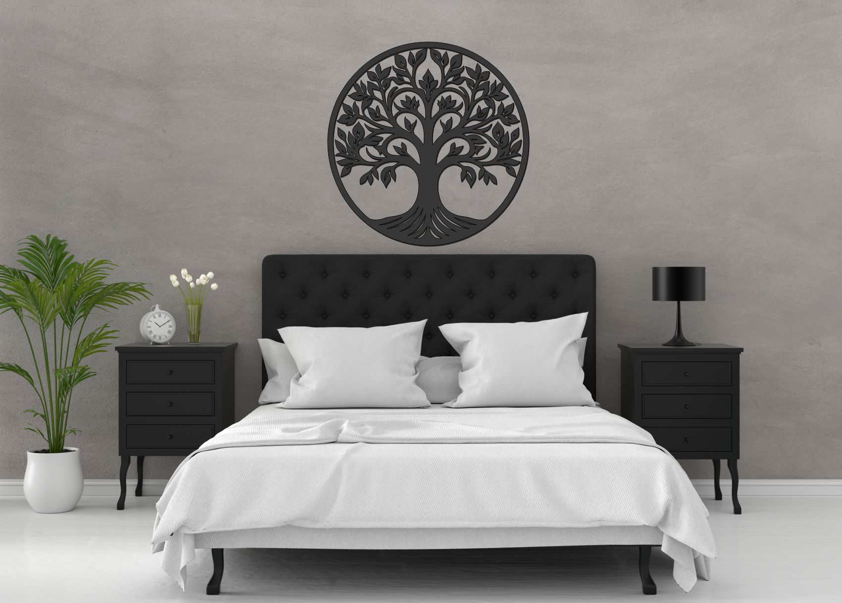 Tento strom života na stenu je stelesnením rovnováhy, symetrie a čistoty dizajnu. Jemne prepracované vetvy vytvárajú harmonickú korunu uzavretú v kruhovom ráme, ktorý symbolizuje jednotu, nekonečnosť a stabilitu.