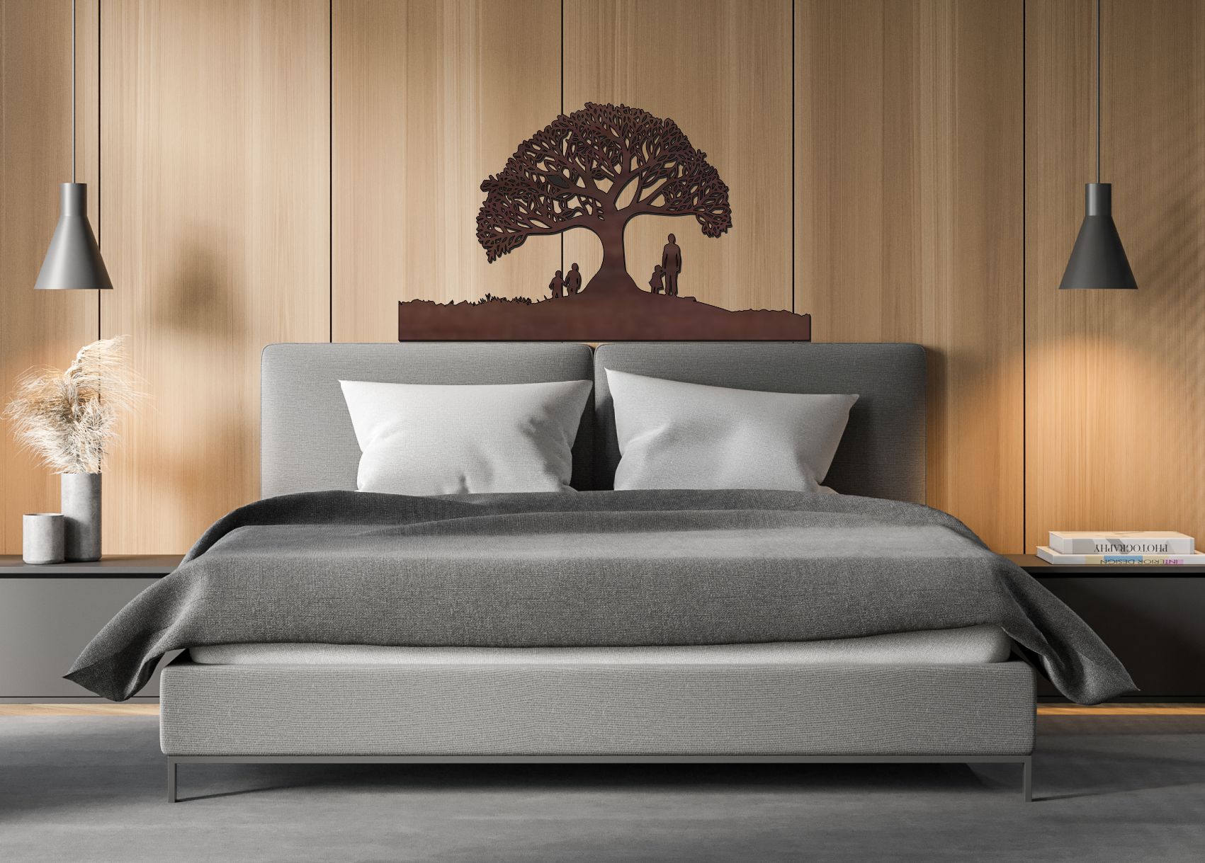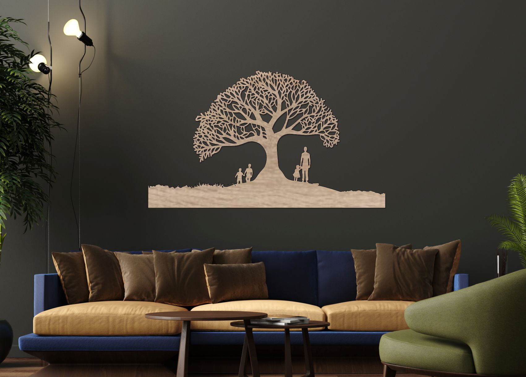 Strom života – Rodinné korene je moderný drevený strom života na stenu, ktorý symbolizuje silu rodiny, stabilitu a generačné prepojenie. Detailne vyrezávaná koruna predstavuje rast a budúcnosť, zatiaľ čo postavy pod stromom zdôrazňujú hodnotu domova a blízkosti.