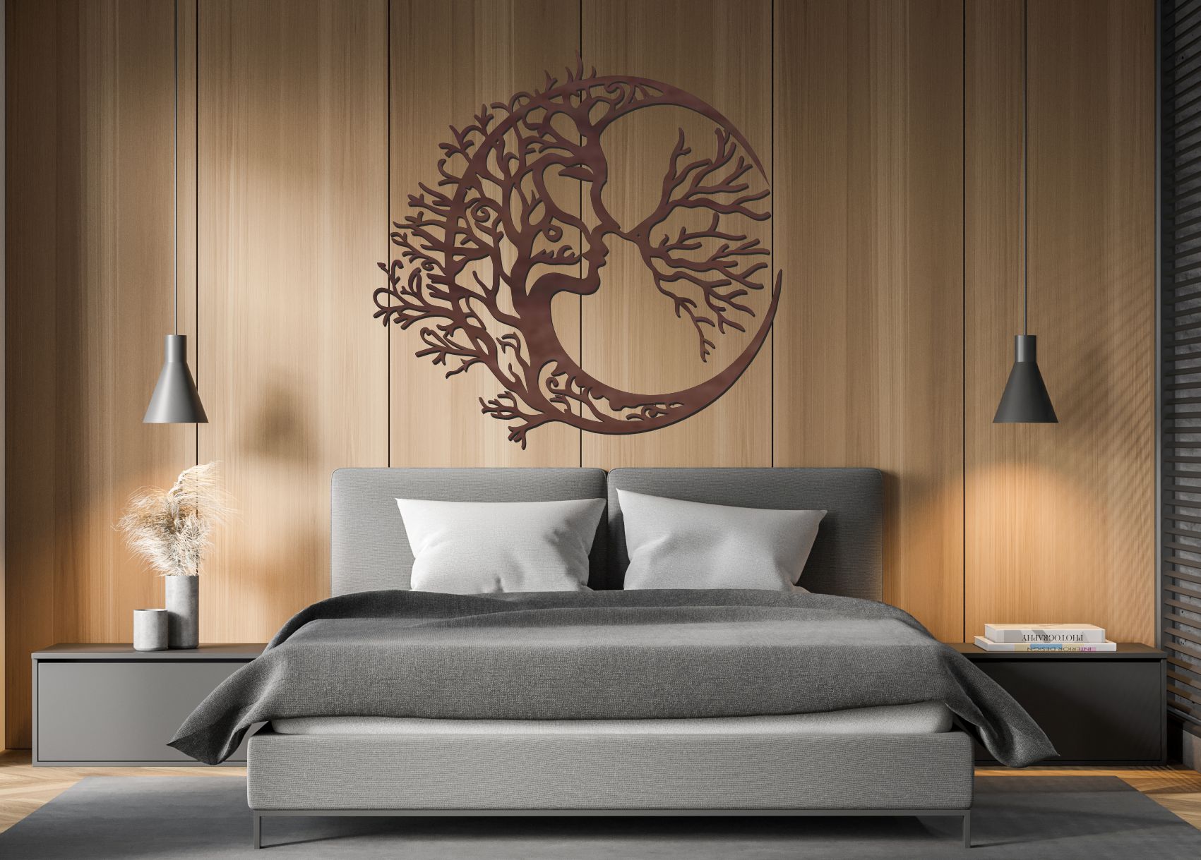 Strom života na stenu Ženský profil v kruhu je model, ktorý okamžite zaujme – nie masívnosťou, ale jemnou symbolikou a dizajnovou čistotou. Kmeň stromu prechádza do elegantného ženského profilu, pričom vetvy vytvárajú vzdušnú kresbu a otvorený kruhový rám pôsobí moderne a ľahko.